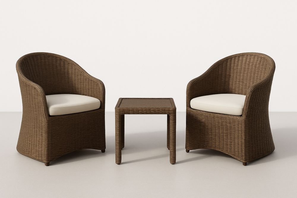 Zestaw z technorattanu 2 krzesła z poduszkami i stolik brązowy