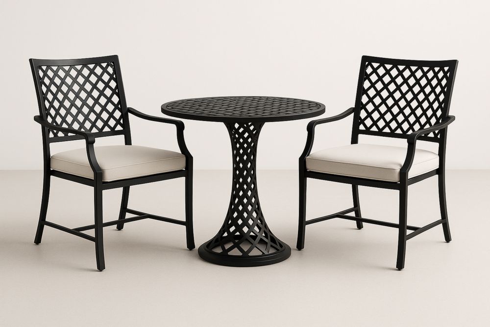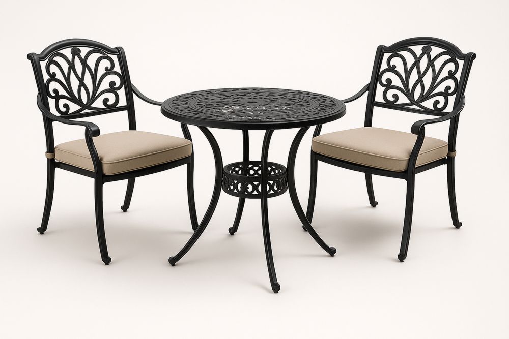 Zestaw mebli ogrodowych metalowy stół i 2 krzesła z poduszkami Czarny