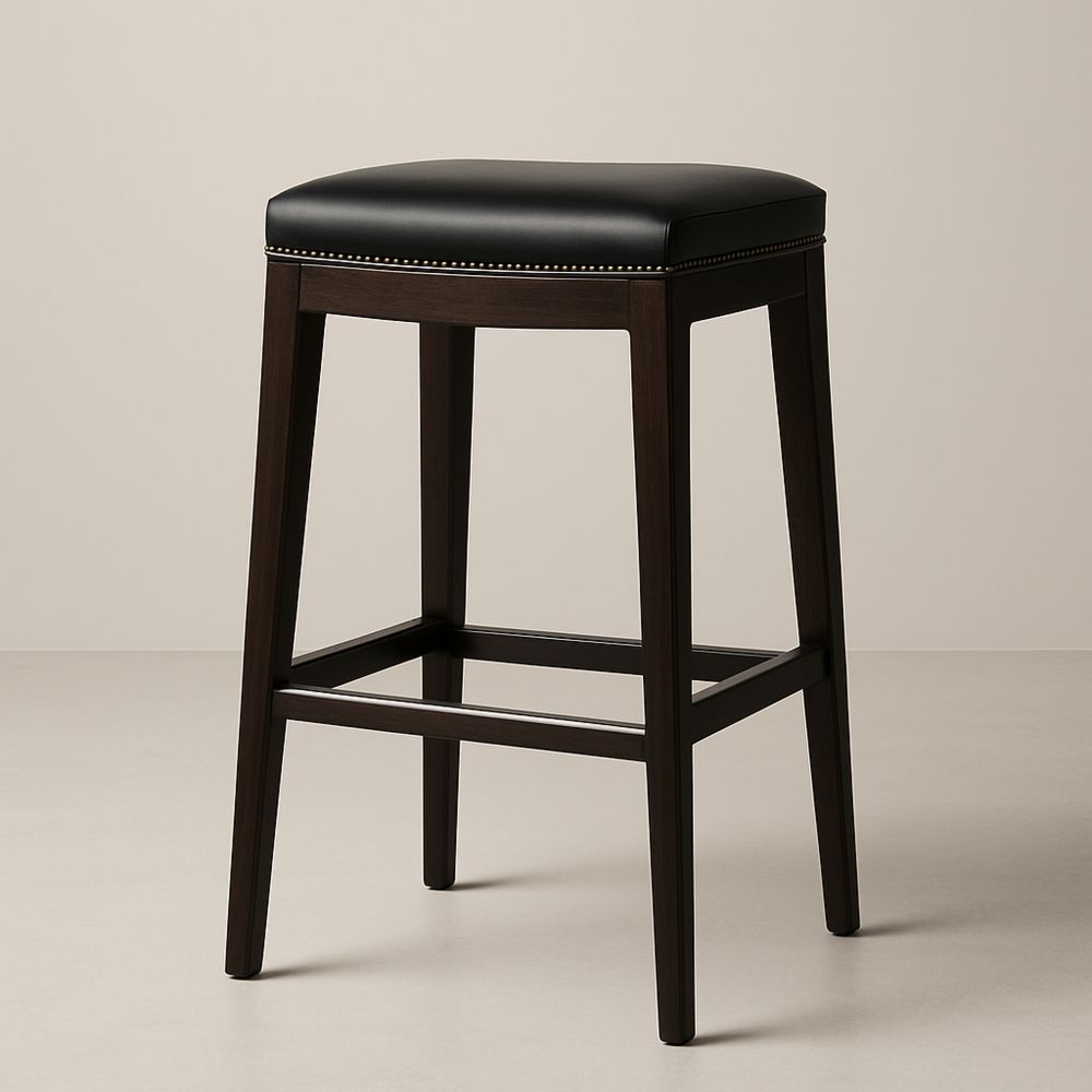 Stołek drewniany ze skórzanym siedziskiem, Czarny i ciemny brąz, 75 cm