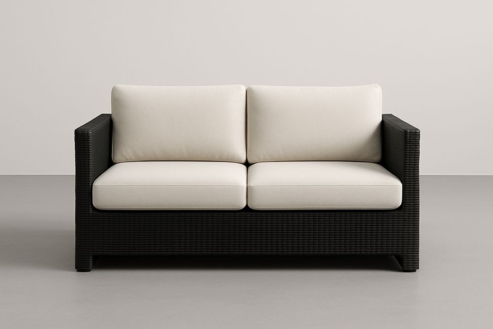 Sofa z technorattanu czarno-biała z poduszkami poliestrowymi