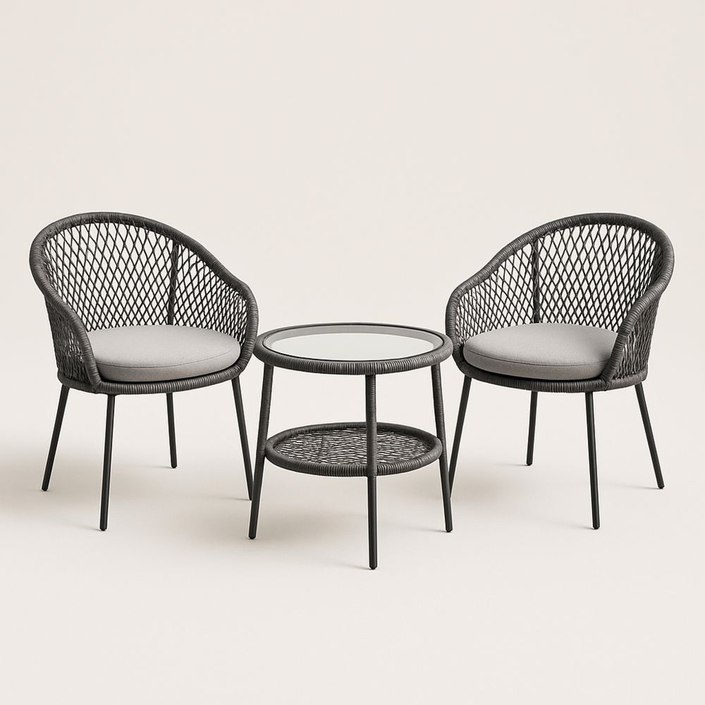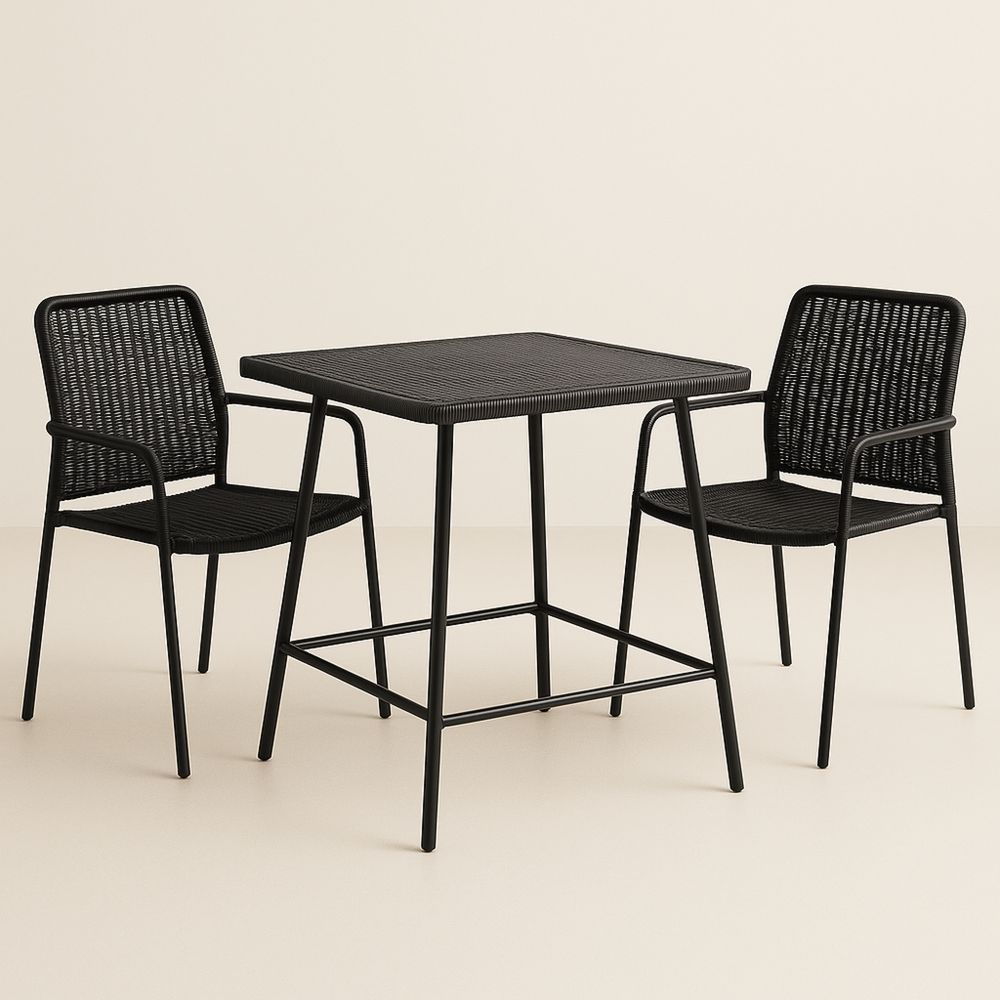 Zestaw mebli ogrodowych z 2 krzesłami i stolikiem ze szkła hartowanego czarny