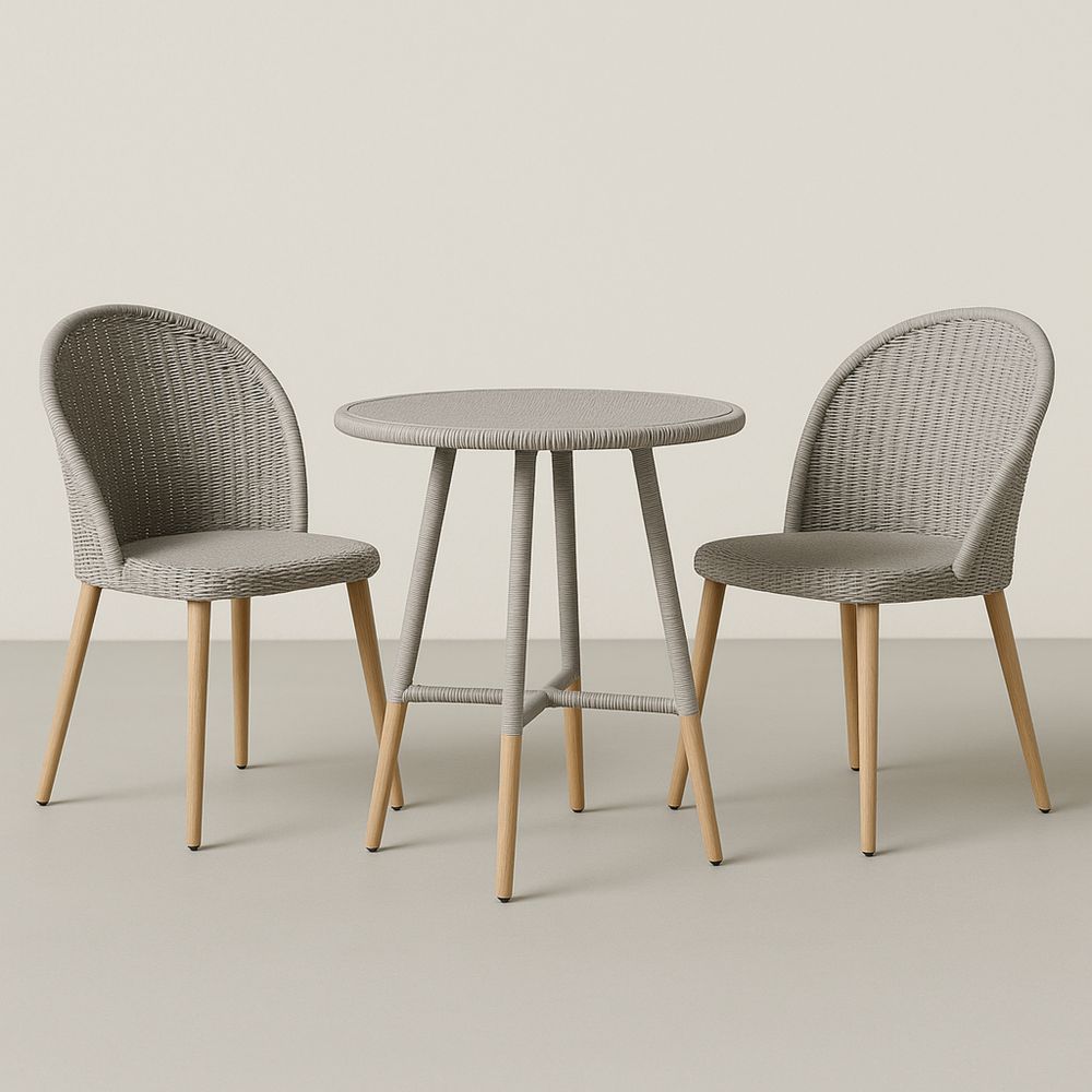 Zestaw mebli ogrodowych stół okrągły 70cm krzesła polipropylen drewno Szary