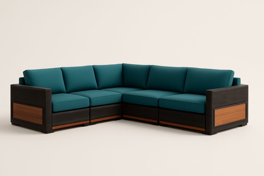 Narożny zestaw ogrodowy z rattanu z poduszkami piankowymi Turkusowy